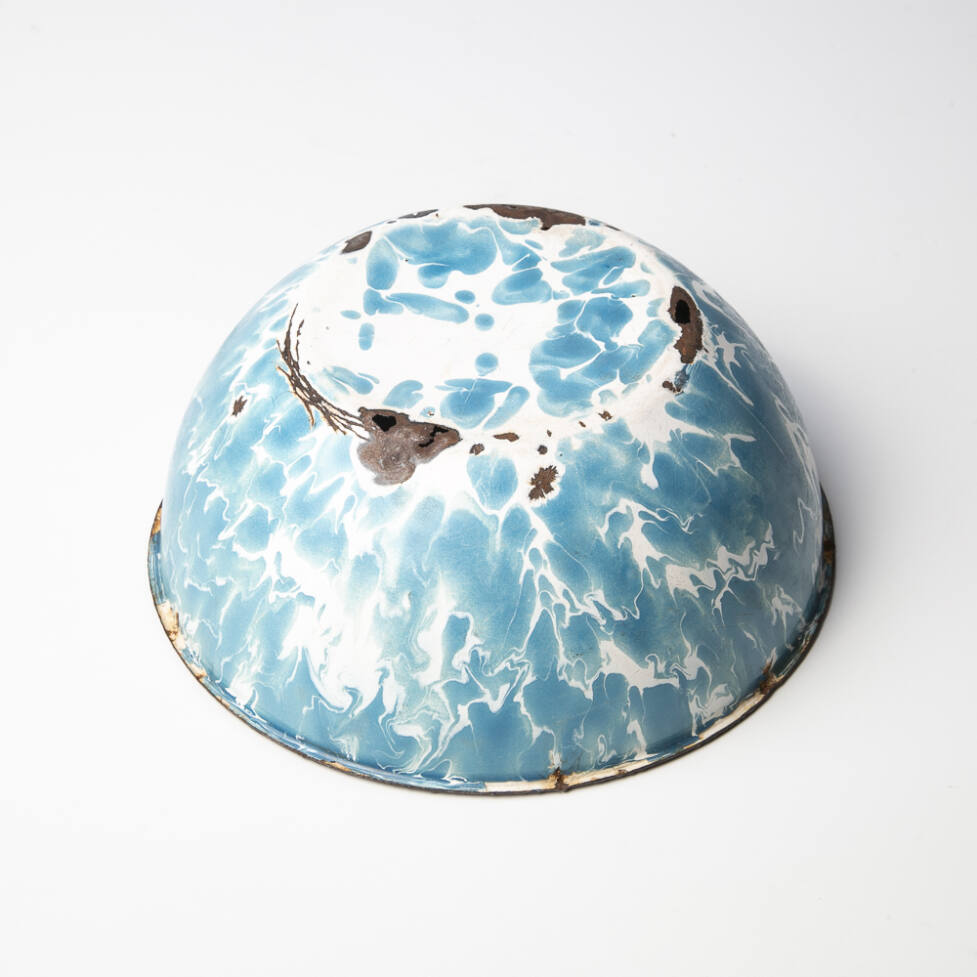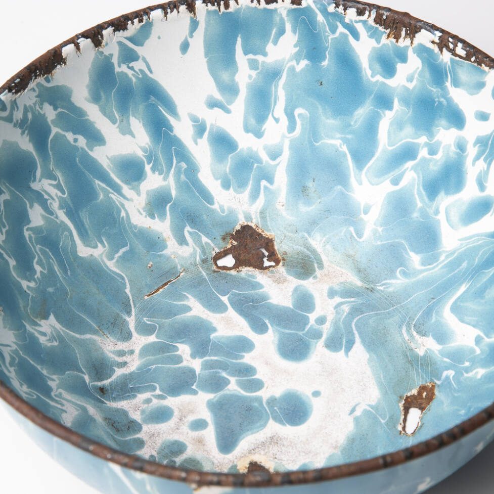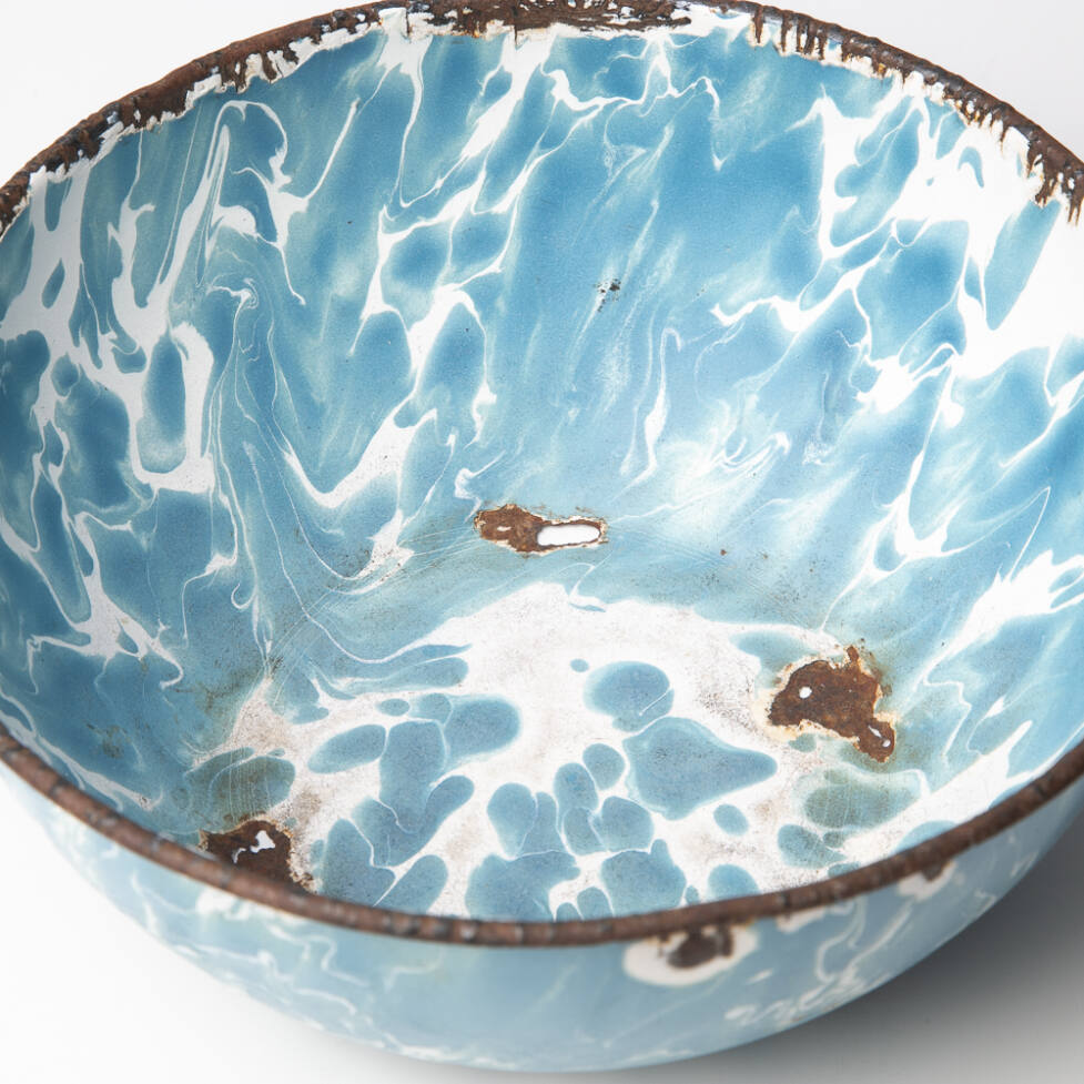 Antigo bowl em ágata, nas cores azul e branco. Possui algumas perfurações devido à antiga ferrugem, podendo ser usado apenas como item decorativo.