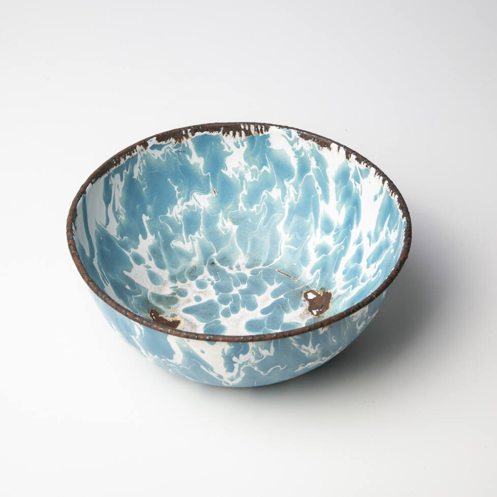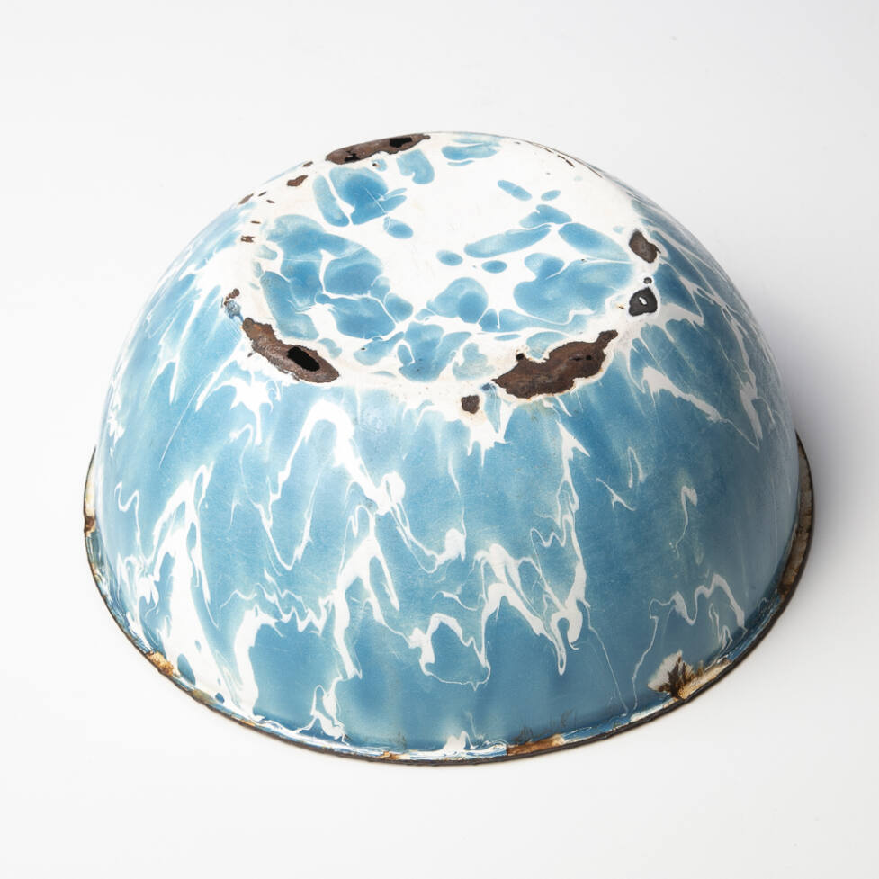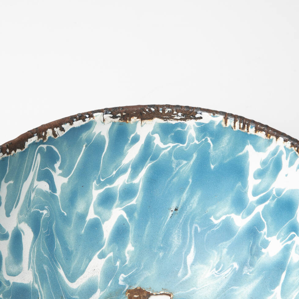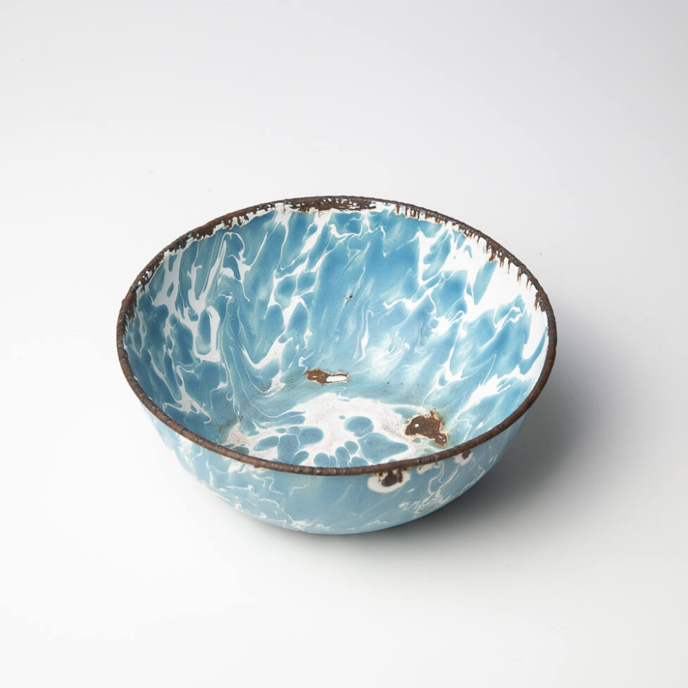 Antigo bowl em ágata, nas cores azul e branco. Possui algumas perfurações devido à antiga ferrugem, podendo ser usado apenas como item decorativo.