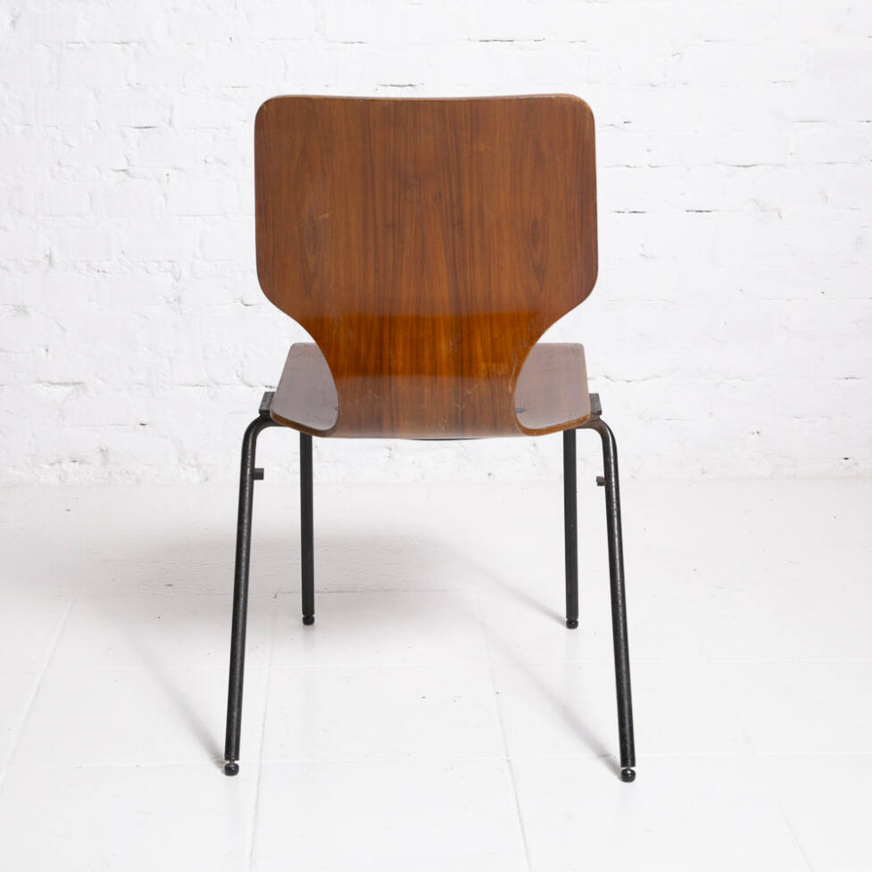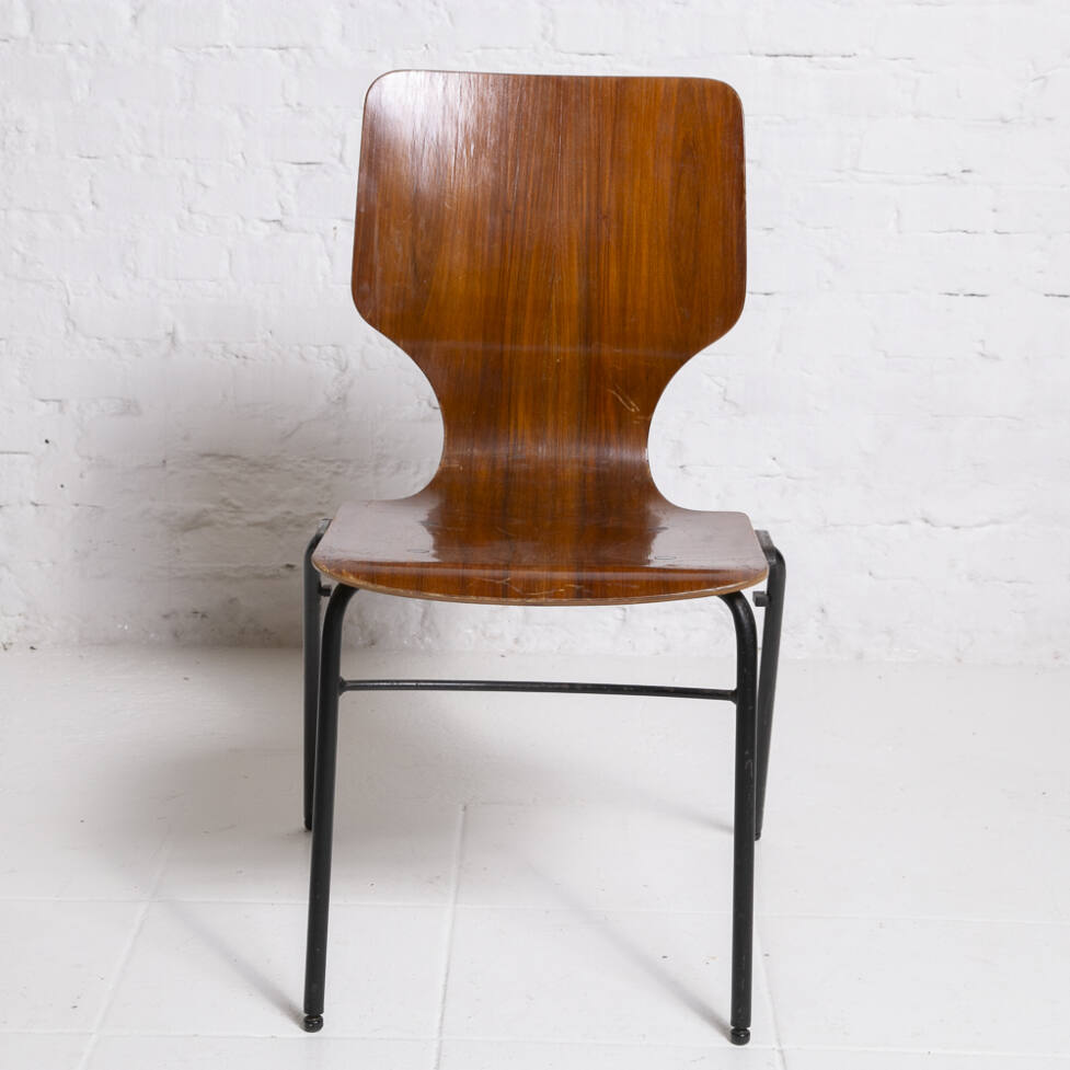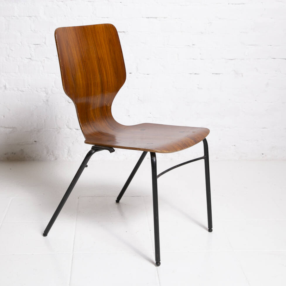 Cadeira atribuída a Adam Stegner em madeira e metal tubular.