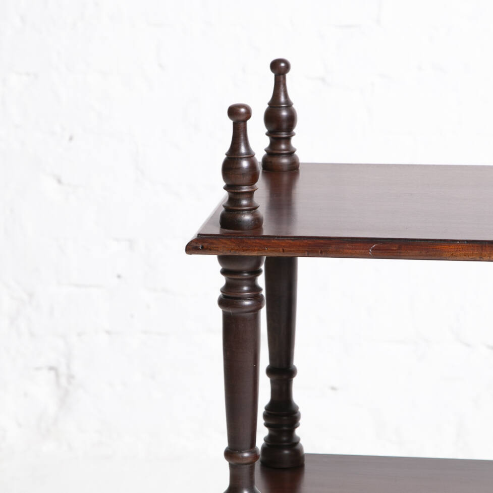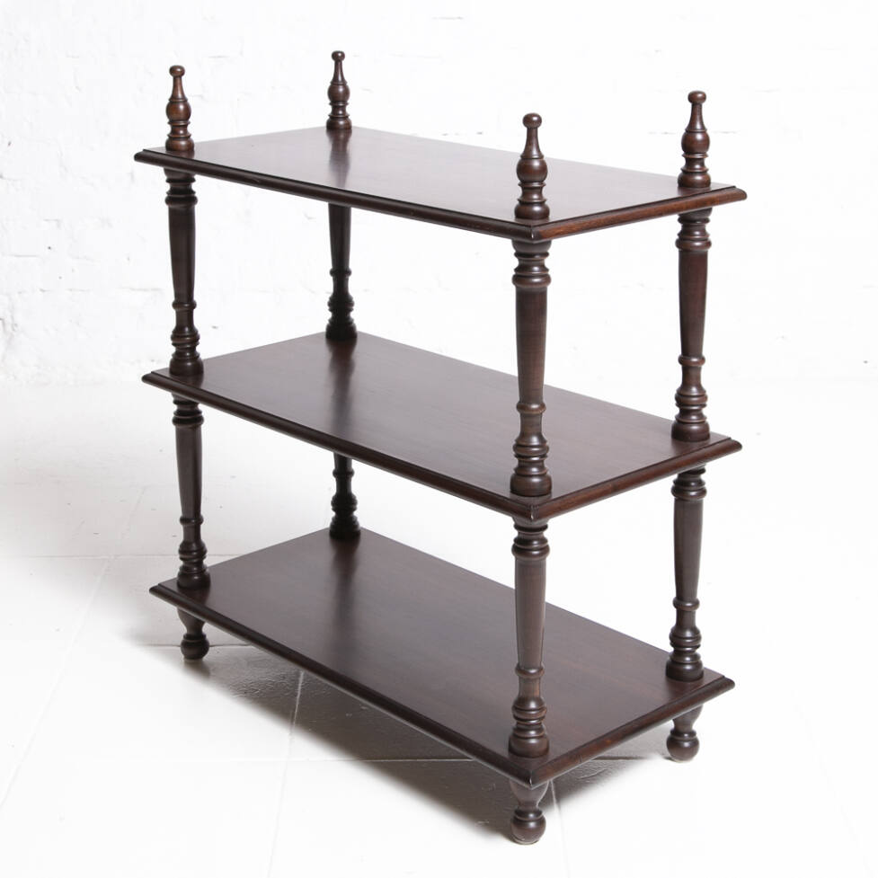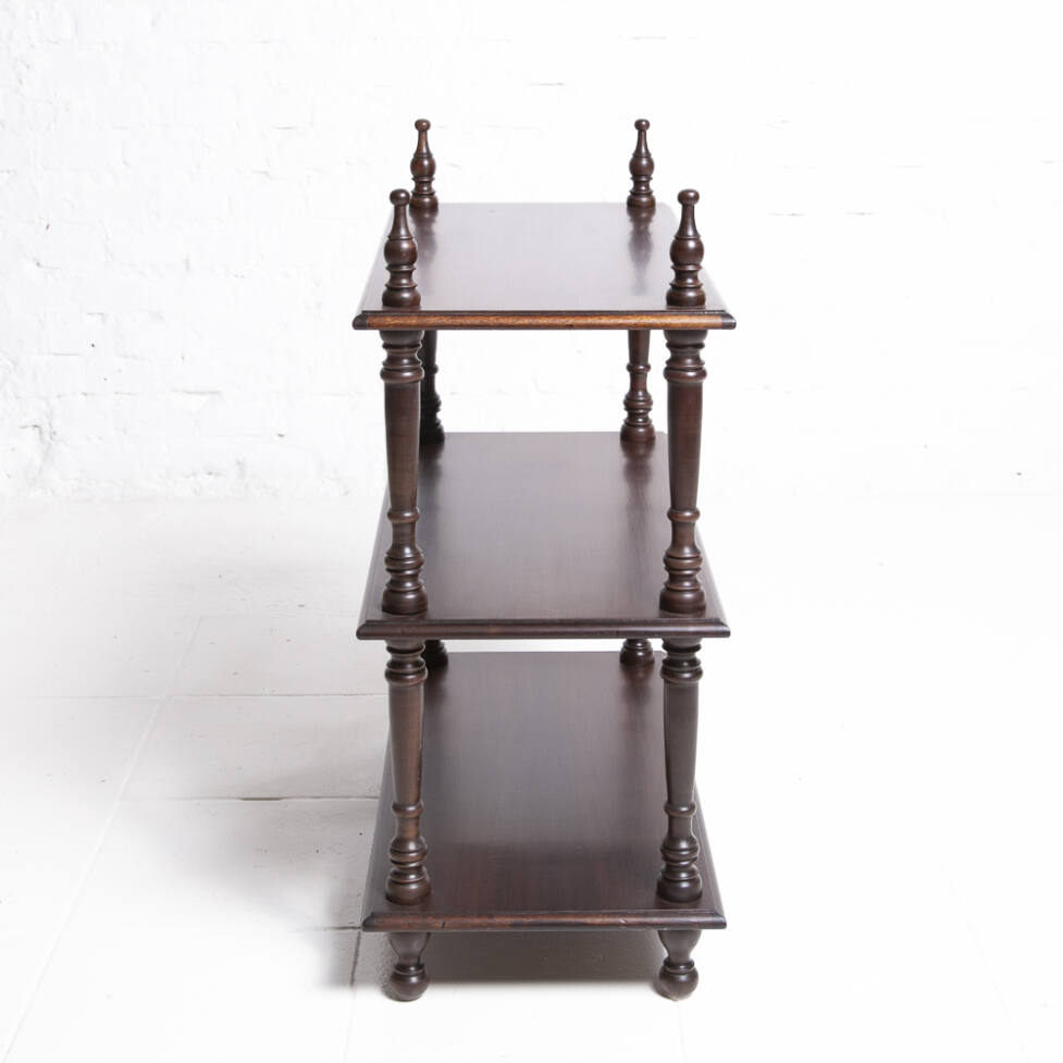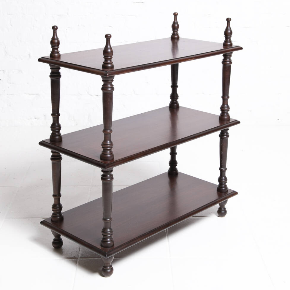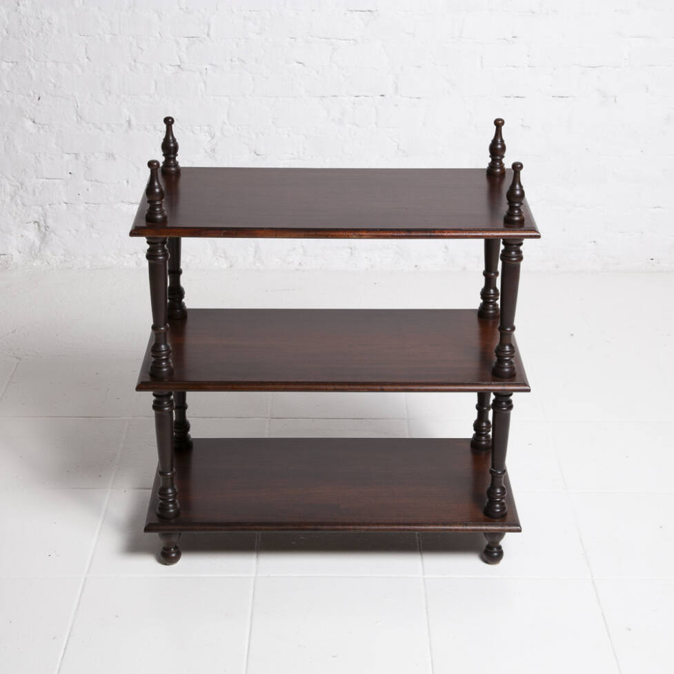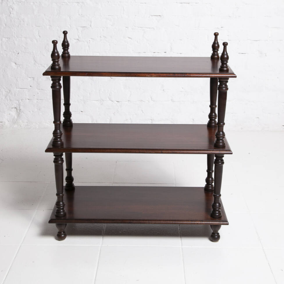 Pequena estante em madeira de imbuia torneada, com 03 prateleiras.