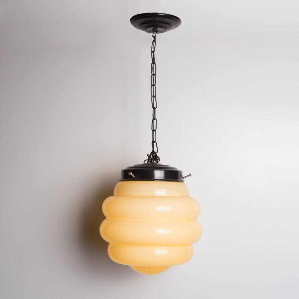 Luminária pendente em opalina, com fiação conservada para uma lâmpada E 27.