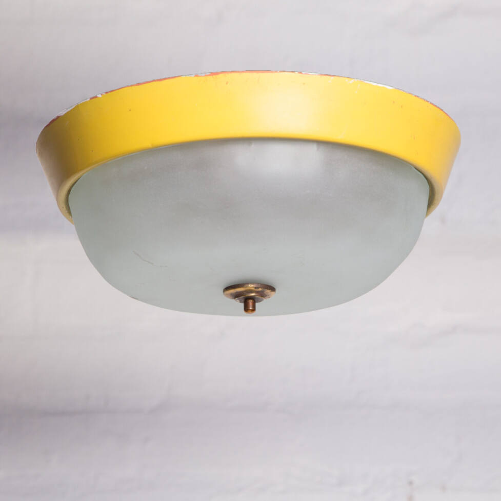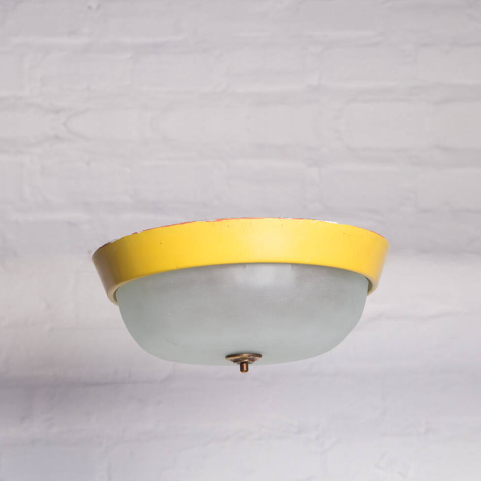 Luminária plafon em vidro e metal, com fiação conservada para uma lâmpada E 27.