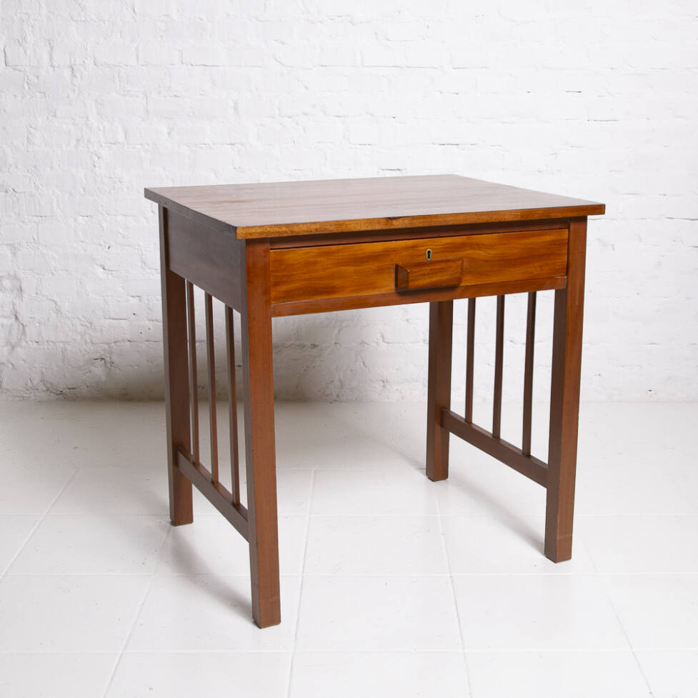 Mesa auxiliar / escrivaninha, em madeira de lei, com 01 gaveta central.