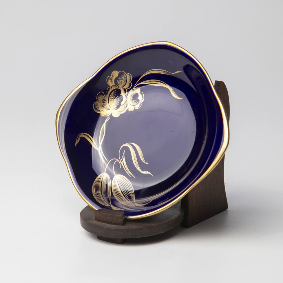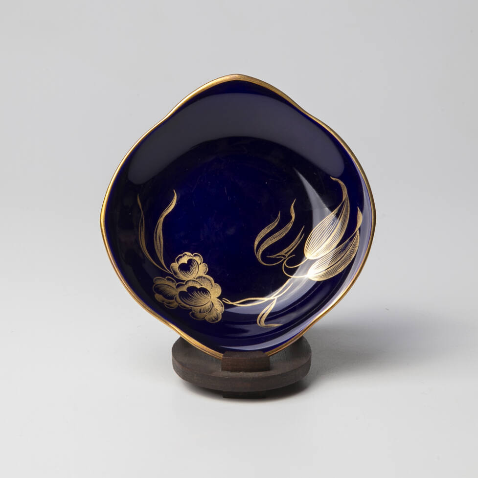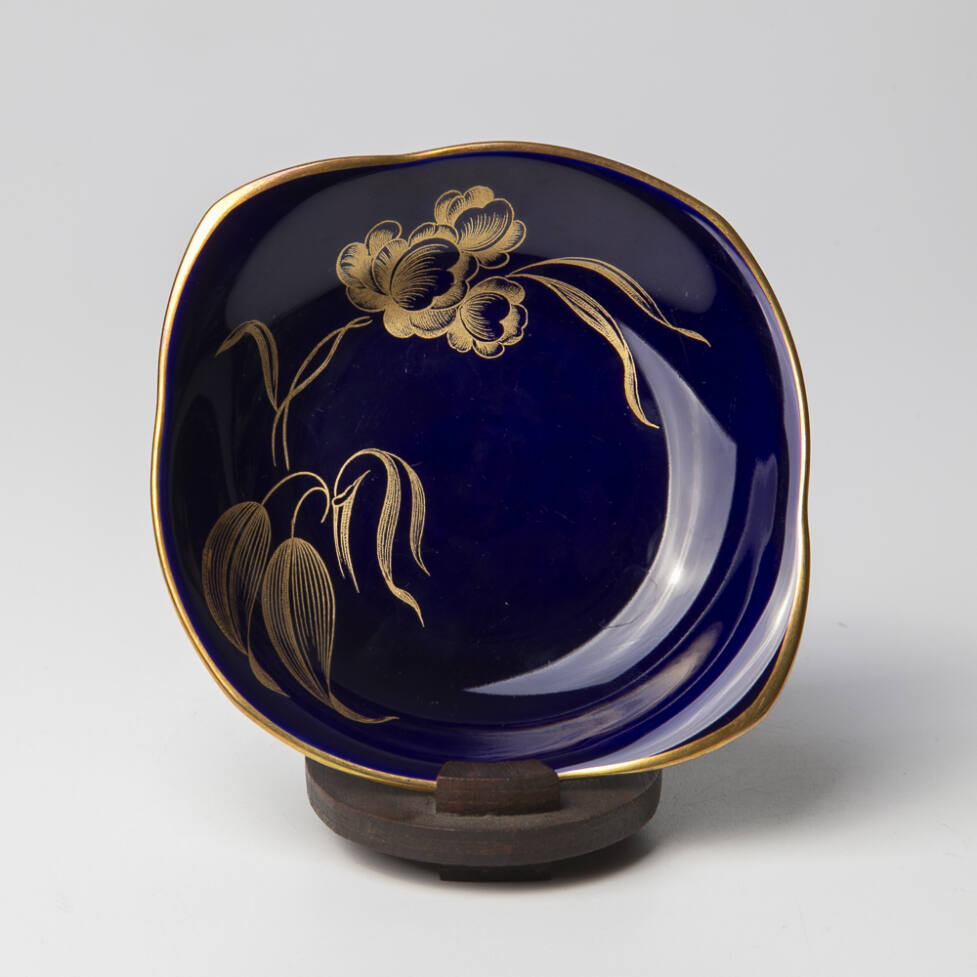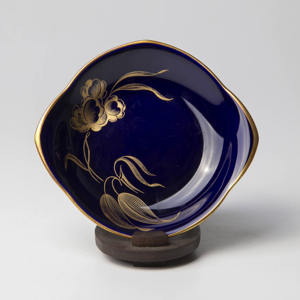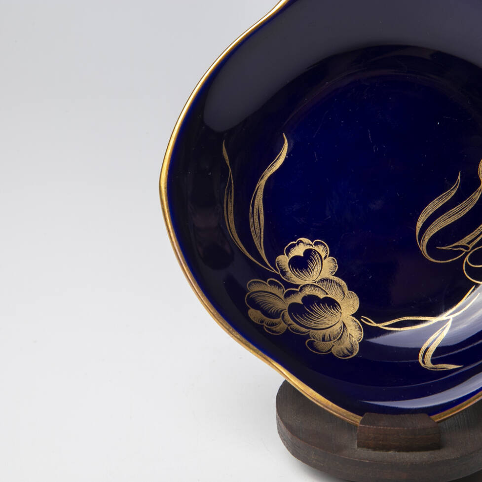 Pratinho em porcelana alemã, da marca Hutschenreuther, na cor azul cobalto com douração.